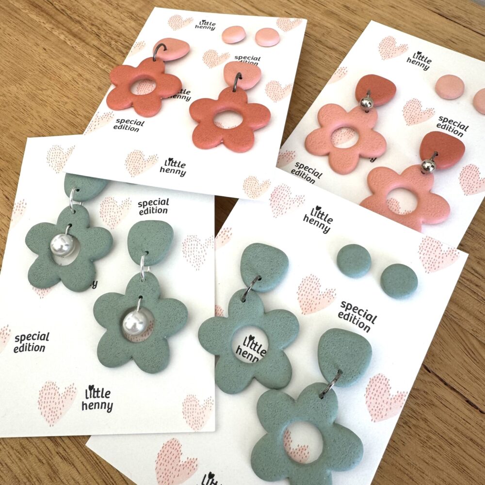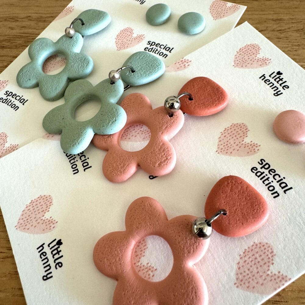 Pretty petals to inspire you for Spring! Textured polymer clay flower dangles and matching studs with stainless steel posts and comfort backs for a secure hold. Flower measures approximately 32 mm diameter with a 10 mm hole. Rounded triangle stud tops measure 15 mm at widest point. 10 mm bonus studs (same size as my popular signature small studs). Lightweight design. Carefully sanded for smooth edges. Based on your feedback preferences, some pairs feature a bead adornment and some don’t! It’s not often you get two pairs of neatly handcrafted earrings for this price.
